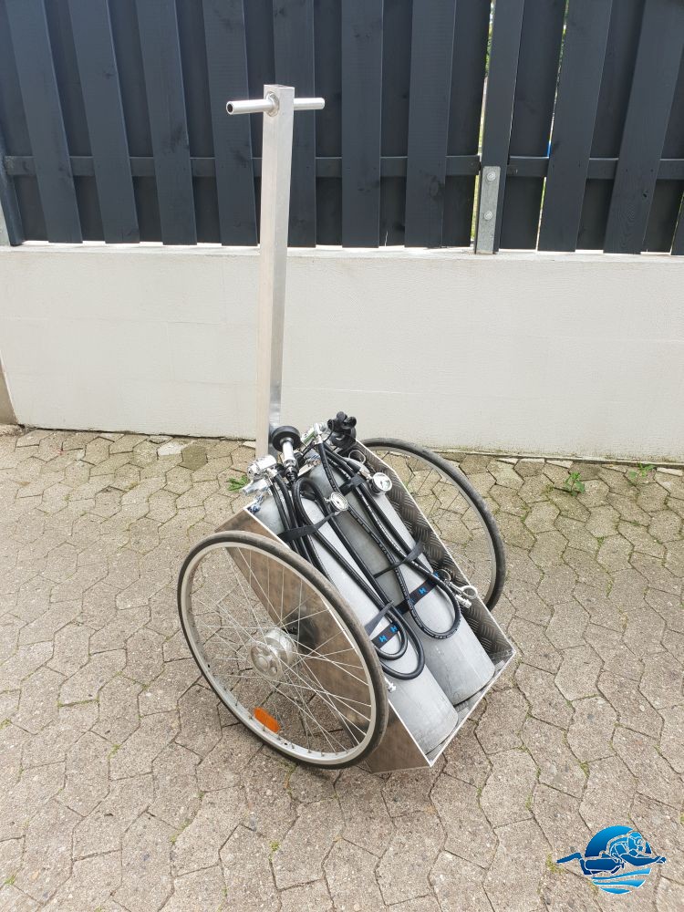 Karre bleibt auch leer so stehen, beim transport liegen Flaschen waagerecht