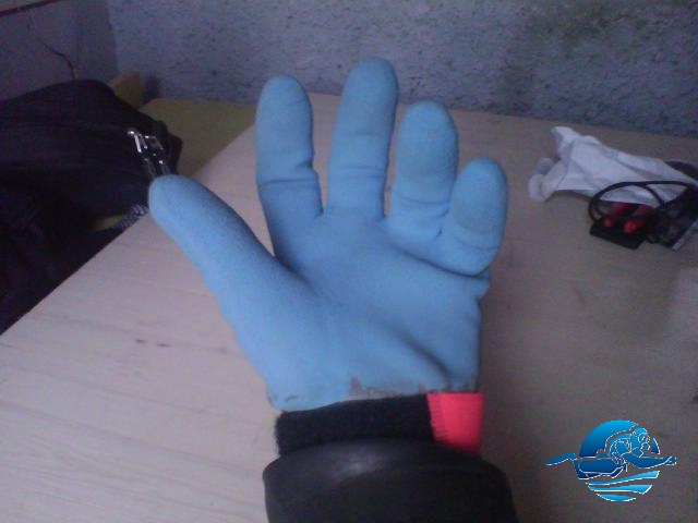 Handschuh angezogen mit Klettband