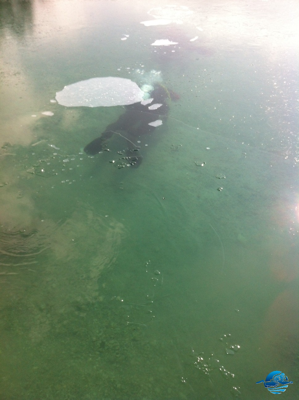 Taucher unter Eis